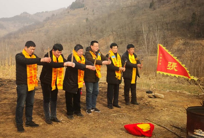 2019年1月31日(农历腊月二十六日) 黄崖头分支宗亲代表22世世明,23世传敬、传华、传金,24世成彦、成福、成亮、永刚、子诚,25世张毅等去障保峪祖茔上坟祭祖。