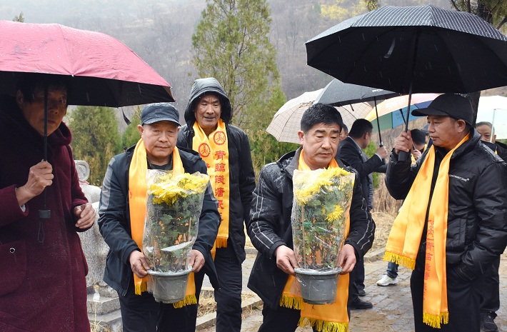 好雨知时节,当春润苍生。2024年3月25日(农历二月十六)9时28分,钱塘张氏宗亲会在障保峪祖茔隆重举行甲辰清明祭祖暨敬立张文衡公先贤功德碑仪式。宗亲会执委会全体成员,青州临朐各分会会长,桓台薛庙分会代表,张文衡公的直系亲属及有关旁系亲属等50余人冒雨参加活动。