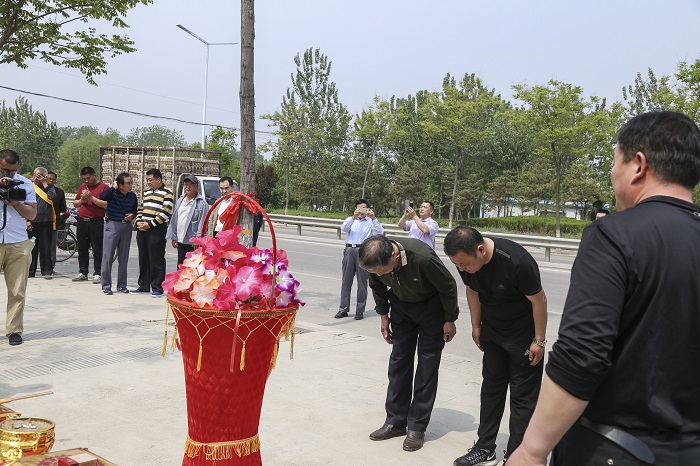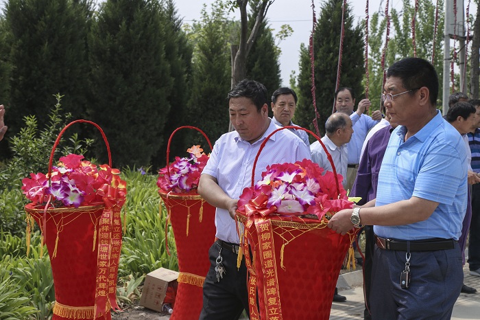 柳家圈村族人代表张忠智、成生向谱碑敬献花篮