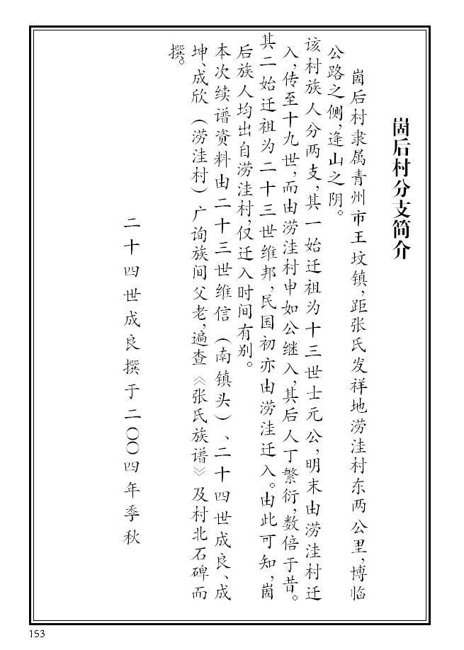 根据张敬华提供的2004版《张氏族谱》电子版整理。如有错漏,敬请指正。