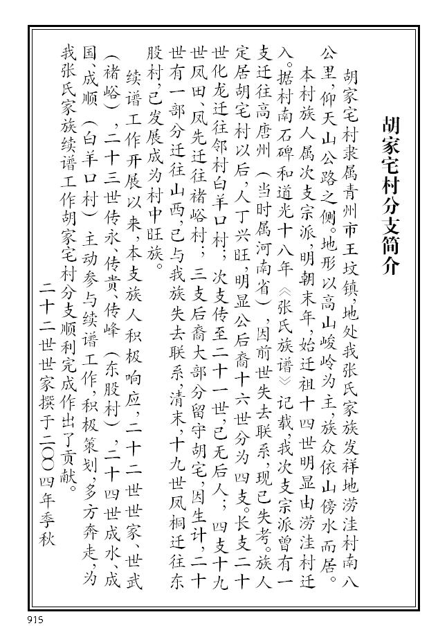 2004版《张氏族谱》——胡家宅分支(含东股、白羊口、褚峪)