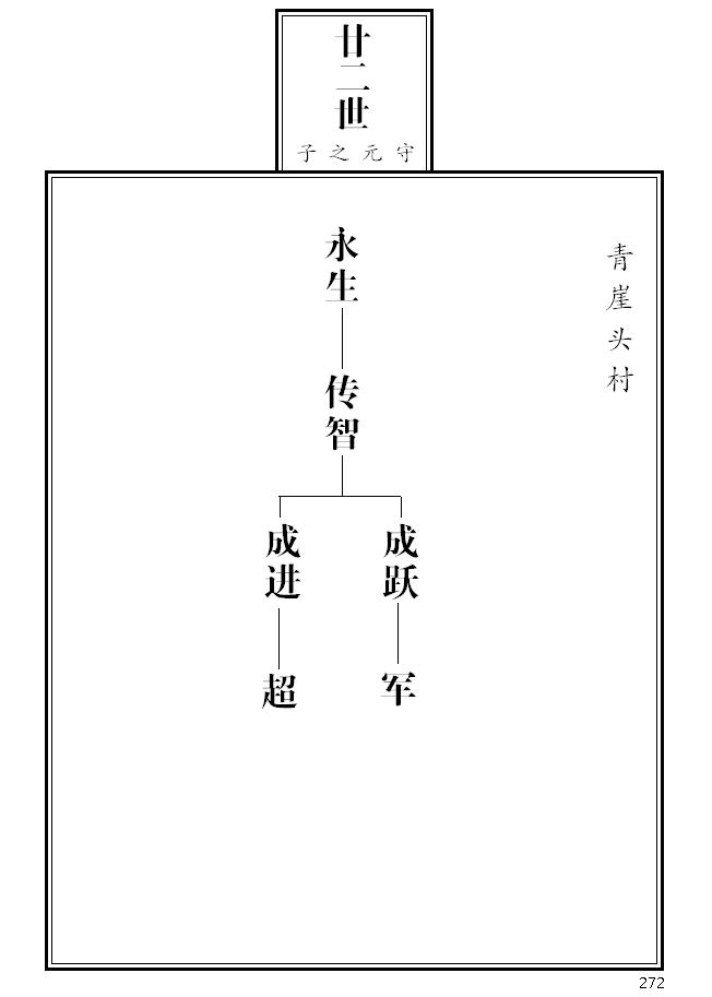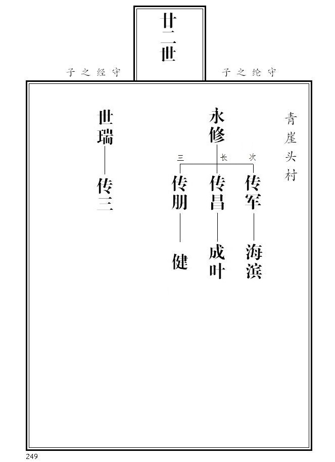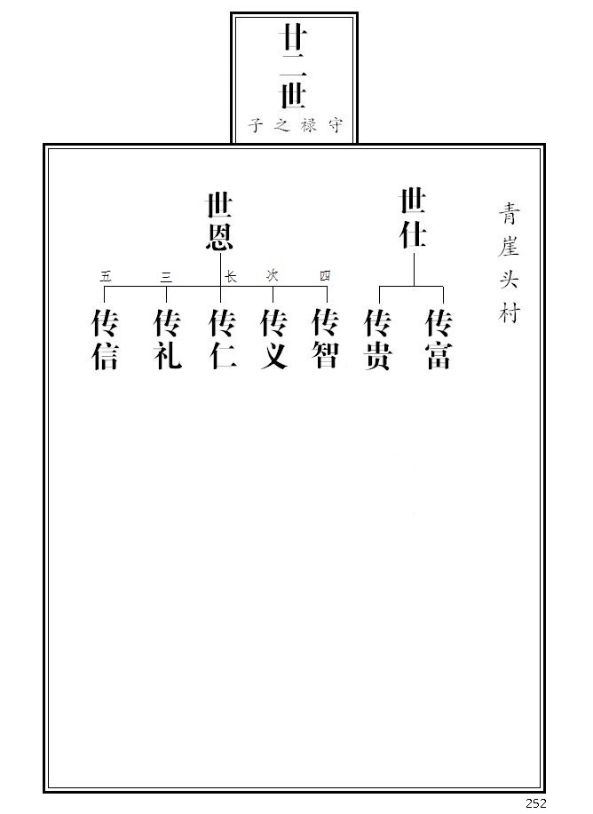 26、 2004版族谱兄弟之间未标注长幼次序,本电子版把兄弟三人以上的已知长幼次序进行了调整并标注(兄弟二人的右为长,不加标注)。