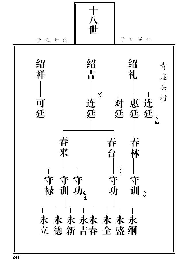 11、 第240页,将永庆出继更正为世锡出继,世锡兄弟四人长幼次序作了重新排列。