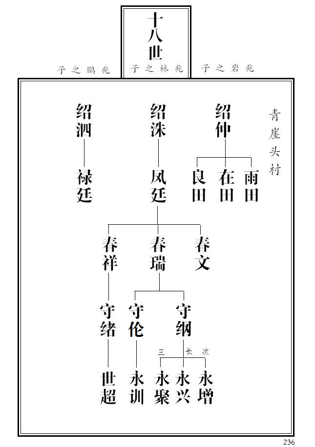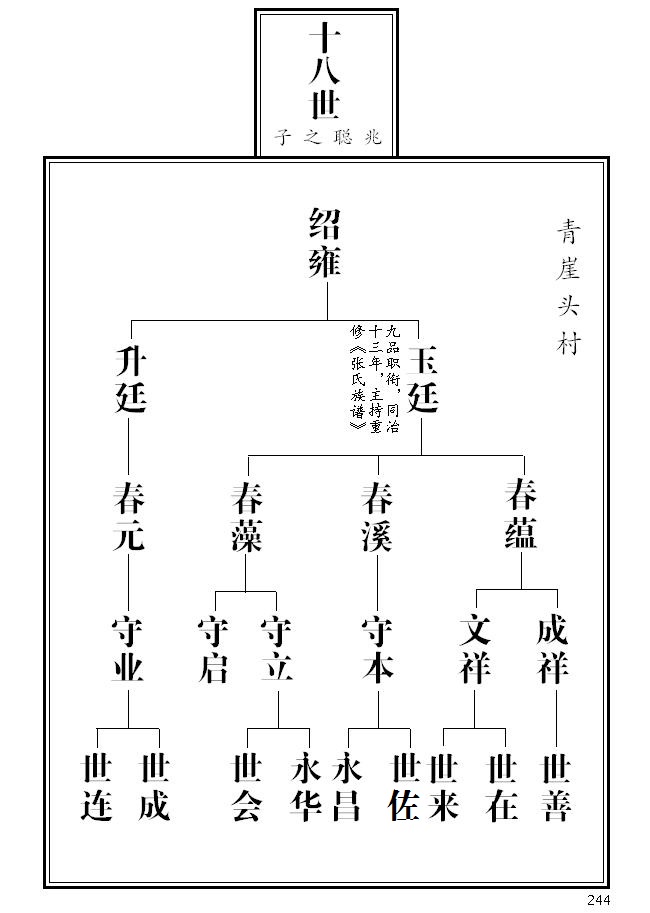 4、 第227页,根据宣统版《张氏族谱》,绍吉、绍礼次序更换;绍壅更正为绍雍。