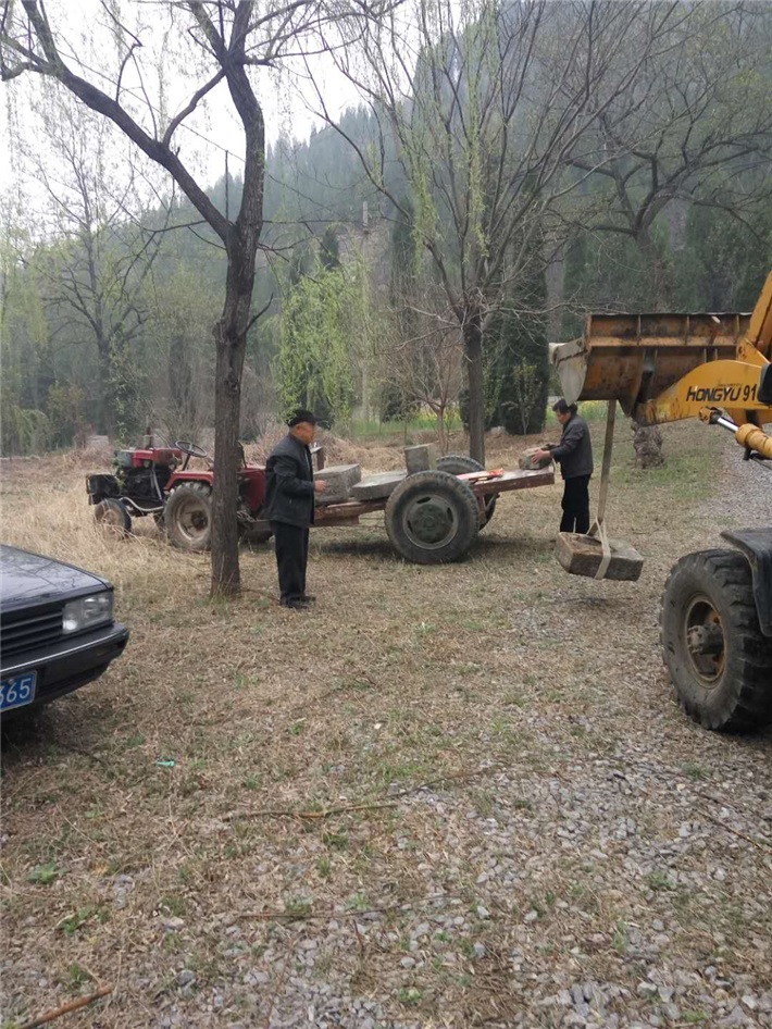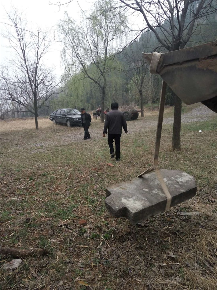 2017年4月8日,涝洼村张成仁、成欣、南镇头村传增搬运祖碑到雕刻厂。