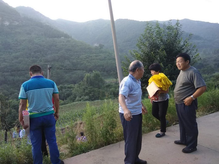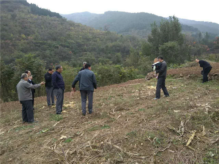 2017年10月14日,张传孝、传恩、传友、传增、成仁、克廉、成诗、敬华、成欣等族人测量始祖碑地基,做开工准备。